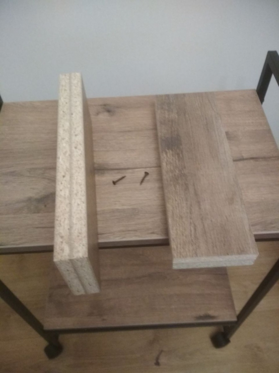 Толщина столешницы - 1,5 см.Расстояние до нижней полки - 22 см.
