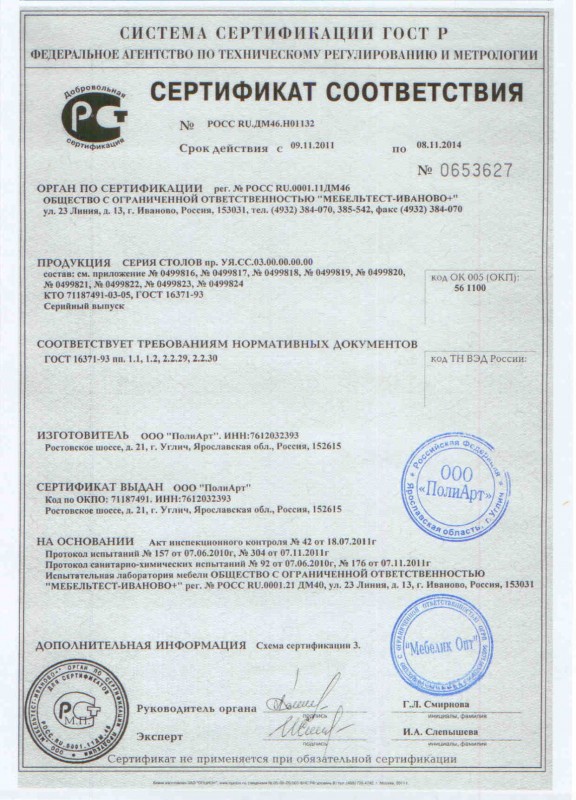 • Сертифицированная мебель высокого качества