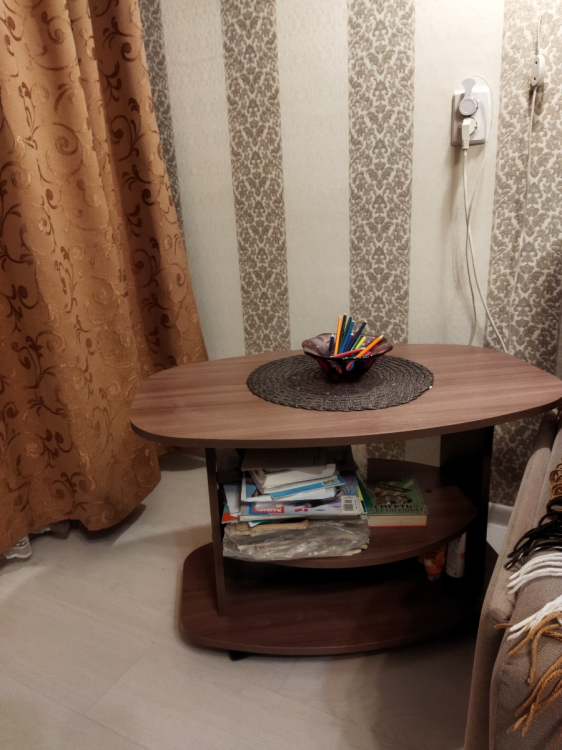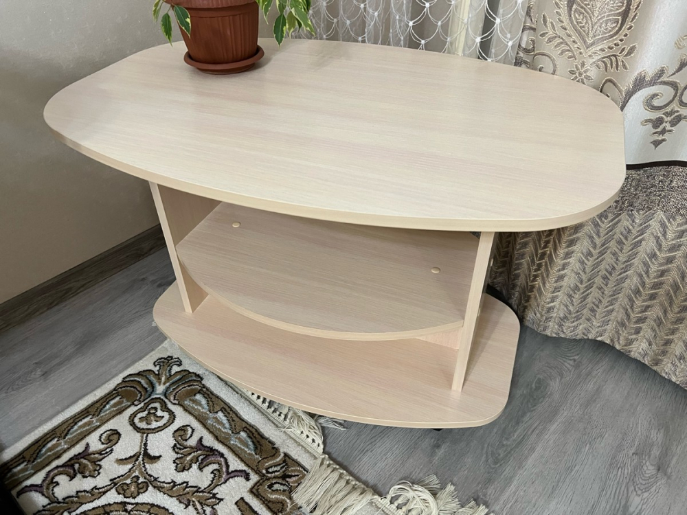 Отличный; Достоинства: Отличный столик ! Рекомендую . Цвет такой же как и в описании . Именно такой и ждала . Сборка быстрая все идёт в комплекте, на колесиках. Ничего не заедает . Отличное качество . Пришёл без повреждений. И быстро ! Увесистый в разобранном виде .; Недостатки: Показался маленьким