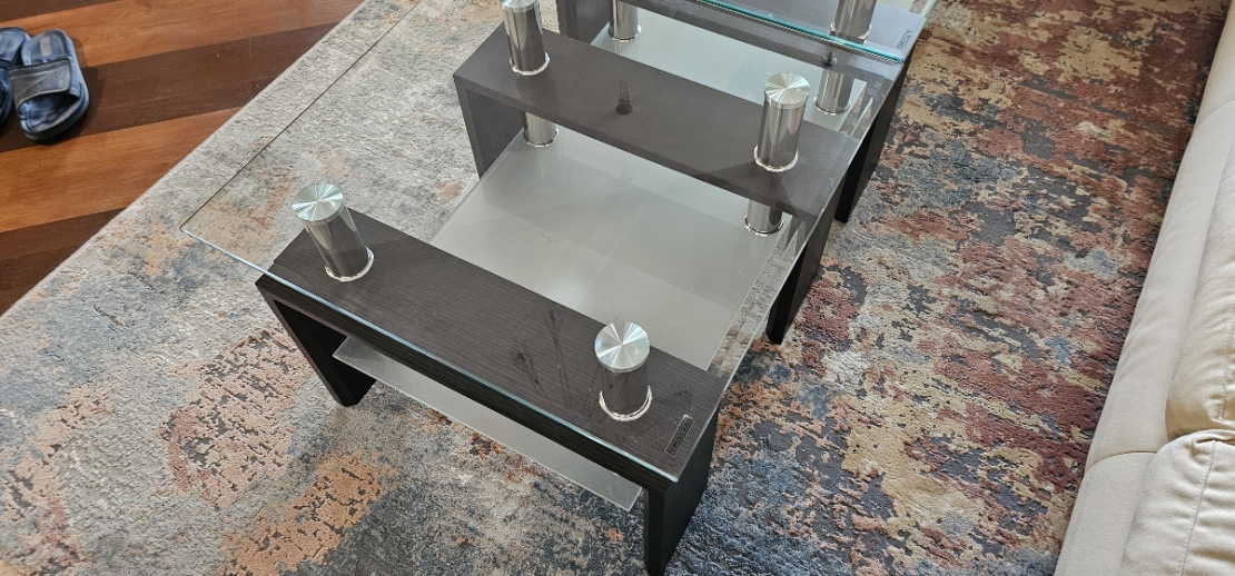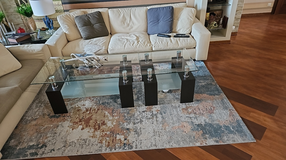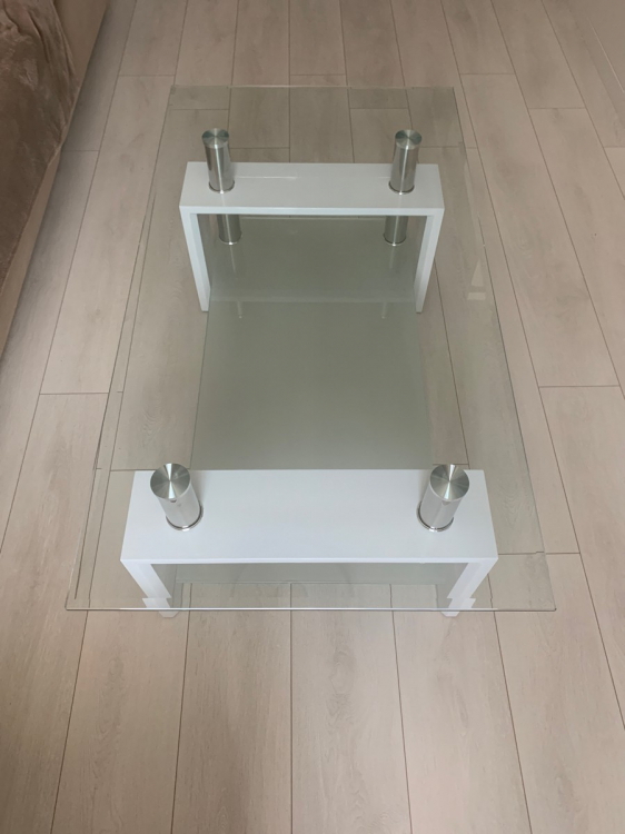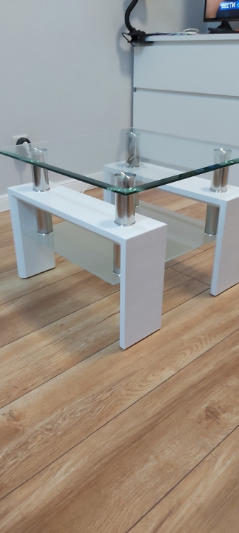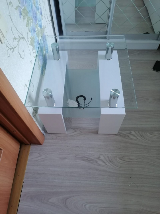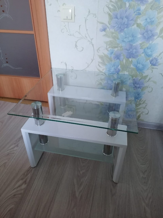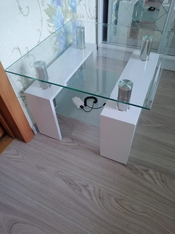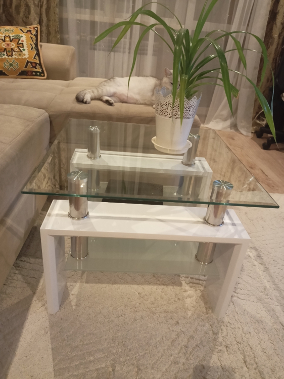 Материал столешницы - закаленное стекло.если у вас пол ровный, соответственно стол будет стоять как полагается. если пол не ровный, придется как-то мастить стол или что-то подкладывать под ножки.; Достоинства: нереально красивый, добротный, толстые белые опоры, толстое стекло, очень крепкий после сборки, если сильно затяните гайки. упакован тоже как надо, даже при желании трудно будет его в упаковке повредить. китайцы хорошо постарались и сделали стол и упаковку на 5+!; Недостатки: маленькие заусенцы на металлических цилиндрах, но если вы не собирали стол, то и вряд ли их увидите