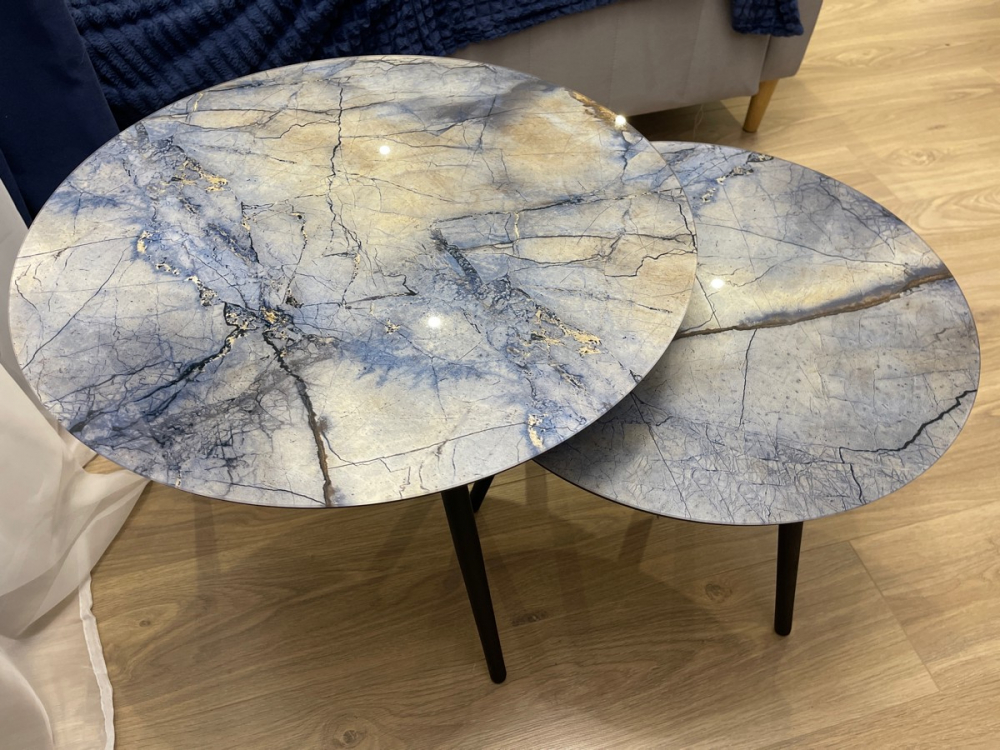 Размер маленького стола (ДхШхВ): 50 х 50 х 37 см.Столы приехали вовремя, курьер-водитель все распаковал, показал и снова упаковал. При сборке проблем не возникло. Требуется только крестовая отвертка-места для саморезов уже намечены, ничего засверливать не нужно. На сборку ушло 3 минуты. Внешний вид как на сайте, смотрятся хорошо. Покупкой довольны.