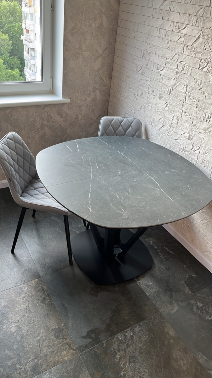 В целом товар оправдал все ожидания по дизайну, но не совсем удовлетворил по свойствам эксплуатации; Достоинства: Красивый стол, подбирал специально под цвет столешницы кухонного гарнитура, раскладой; Недостатки: Размер, все таки великоват, был бы в диаметре сантиметров на 20 меньше - было бы идеально, еще один минус - столешница из камня, момент в том, что она холодная, и за приемом пищи это конечно доставляет определенный дискомфорт
