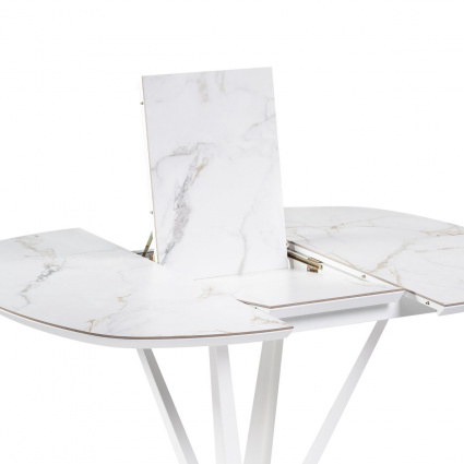 Достаточно раздвинуть края столешницы, достать центральную вставку, раскрыть ее и сдвинуть края.