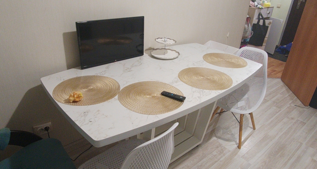 Стол оооочень понравился Большой,устойчивый,абсолютно не шатается.Теперь,когда собирается наша большая семья места хватает всем.Отдельное спасибо продавцу, менедджер отзвонился в этот же день, когда был сделан заказ, договорились о доставке. Доставка вовремя пришла. большое спасибо, однозначно рекомендую.