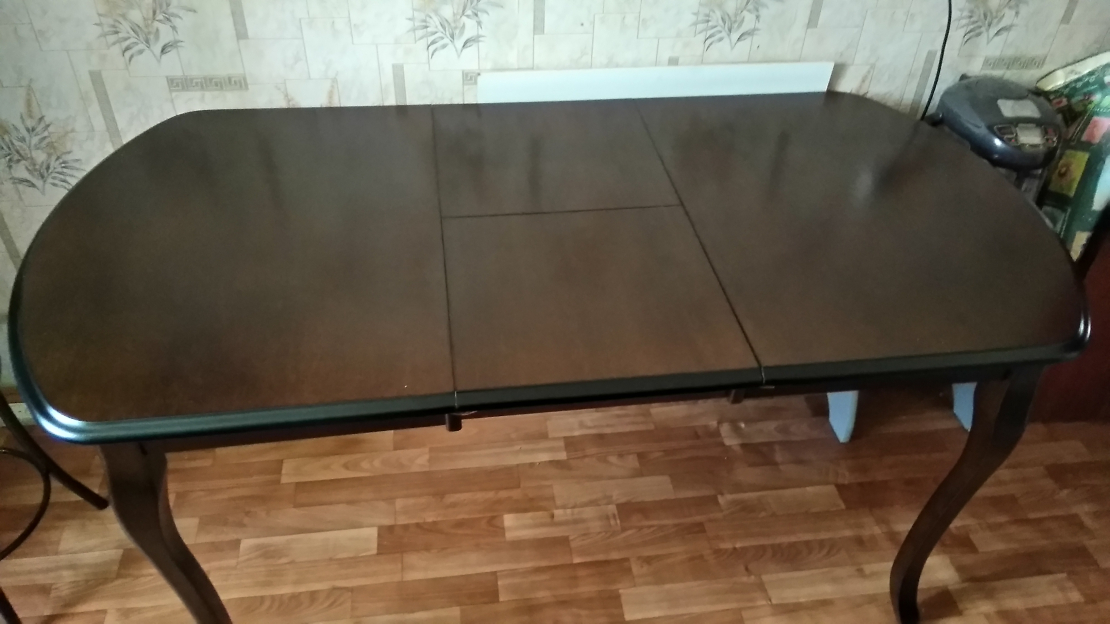 Покупали этот стол в этом магазине ещё до кризисного падения рубля. Как ни странно, а в цене он мало подорожал, на пару тысяч (получается, что я переплатил в своё время :-) ). Стол очень нравится, лёгкий и крепкий. Сделан аккуратно. Цвет столешницы не соответствует по тону каркаса (на фото видно), но мне нравиться, и всё равно скатерть сверху. Столешница шпаклёвана под однородно ровное цветовое покрытие и лакирована. Первый раз этот стол в грузовой компании разбили. Увезли обратно. А магазин отправил повторно новый стол. Всегда распаковывайте и осматривайте внешний вид. Магазин хороший, решил ещё один вопрос с браком другого стола в нашу пользу и без нареканий. Что-нибудь понравится, возьмём здесь, главное дело вкуса.