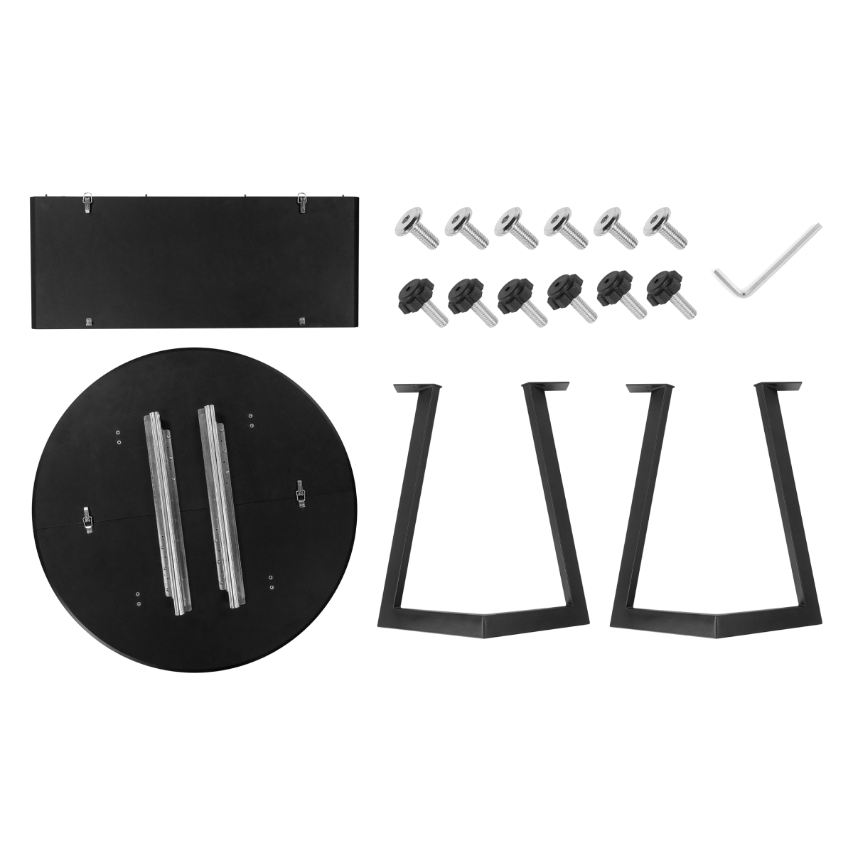 1. Выложите все содержимое из коробки: столешницы, направляющие, ножки, фурнитуру и шестигранник.