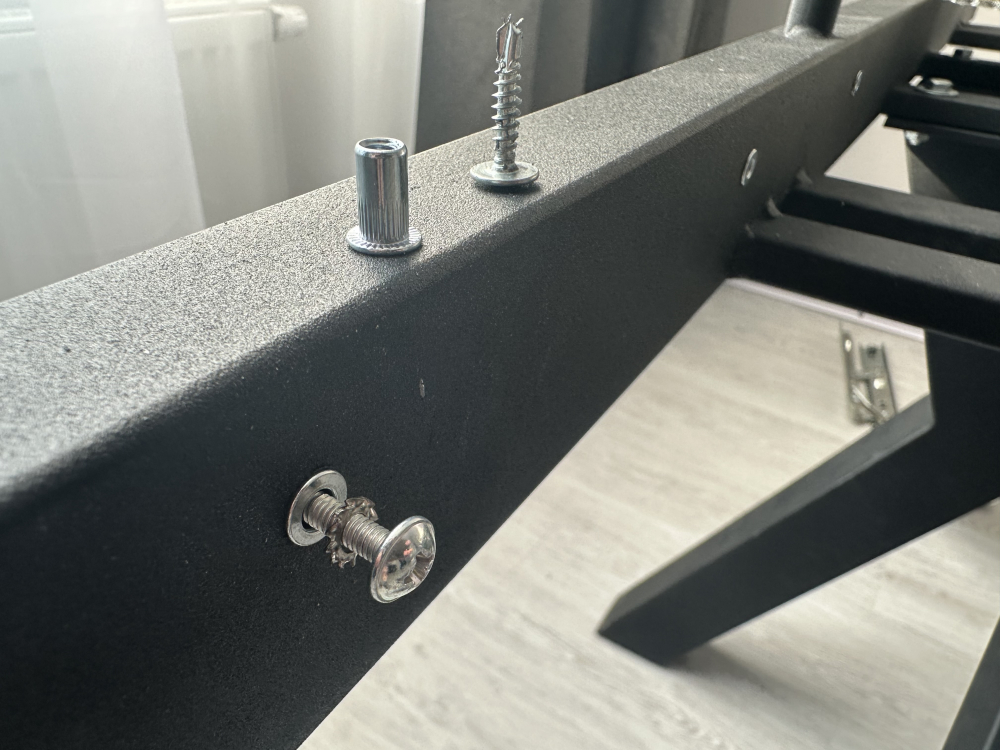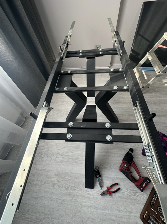 Купил этот стол. В очередной раз убедился, что покупаешь ты стол за 20, за 70, за 120 - всё равно его полезно доработать напильником. Привёз домой, снял направляющие боковых крыльев, отмыл их спиртом от смазки вперемешку с опилками от закрученных саморезов. Смазал вазелином техническим. Вместо бестолковых саморезов, рассверлил отверстия и запрессовал в них резьбовые заклёпки М4. Собрал на винтах со с топорными шайбами - получилось монументально! Ничего не болтается, стоят крылья идеально ровно! Можно теперь на этом столе танцевать. Несмотря на то, что пришлось повозиться, ставлю этому столу твердую пятёрку - в этом бюджете альтернатив нет! Я доволен - это главное!))