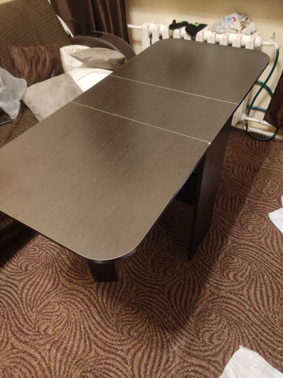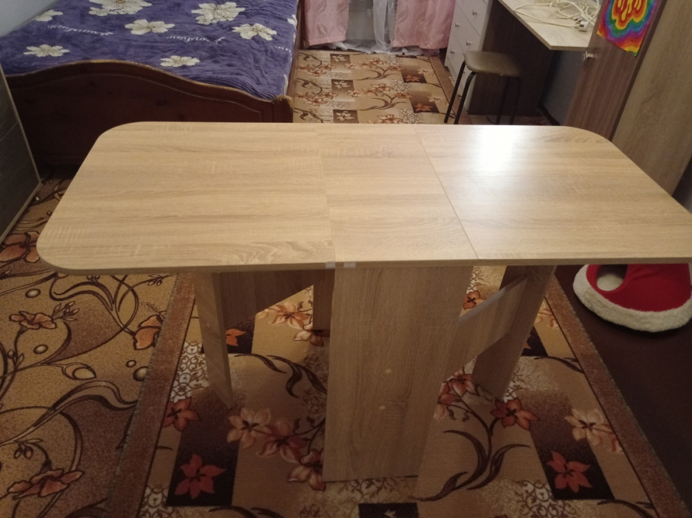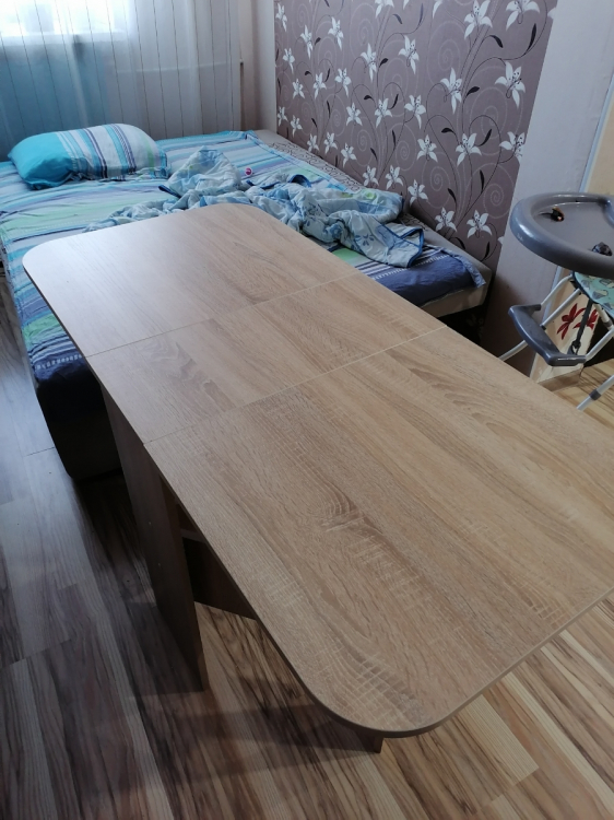 Компактный стол-книжка Мечта удобен и компактен. За счет книжного механизма раскладывания длину можно менять в зависимости от пожеланий владельца, например, к приходу гостей, организации обеда или чаепития для небольшой семьи. Стандартная высота стола позволит легко подбирать к нему любые стулья. Текстурная поверхность мебели полностью имитирует натуральную древесину. Стол отлично подойдет к интерьеру, выдержанному в современном стиле. Добавит удобства и функциональности дому или квартире, отлично дополнит офис или помещение другого назначения.