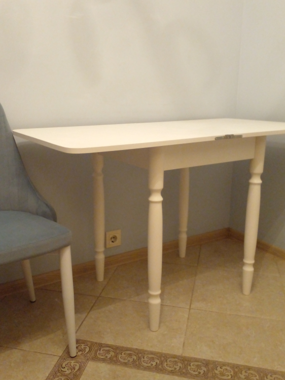Столик как дизайнерский. Говорю это, поскольку сама профессиональный дизайнер. В его дизайне прослеживается некоторое влияние стиля рококо, что делает столик приемлемым для многих помещений. Я купила - для кухни, которую решила обновить. Фрагментарно. В частности, и мебелью. По размерам столик идеально вписывается в маленькую 6-метровую кухню, где благодаря достаточно просторной столешнице может служить как обеденным, так и чайно-кофейным. Мне понравилось и его изготовление: во-первых, столик деревянный! -а, во-вторых, очень аккуратно, и, я бы даже сказала, - с любовью сделан. Всем советую! - отличная вещица для дома! Способен не только украсить кухню, но и спальню, как туалетный для трюмо, или гостиную... А еще обратите внимание в каталоге на такого же дизайна табуреты. Лично я собираюсь приобрести два для своей обновленной кухни И конечно же эта фирма приятно удивила отношением к клиентам. Четко организована доставка и сборка, всё без проблем, доброжелательно, вежливо и ненавязчиво( как у некоторых других... увы, приходилось сталкиваться..).