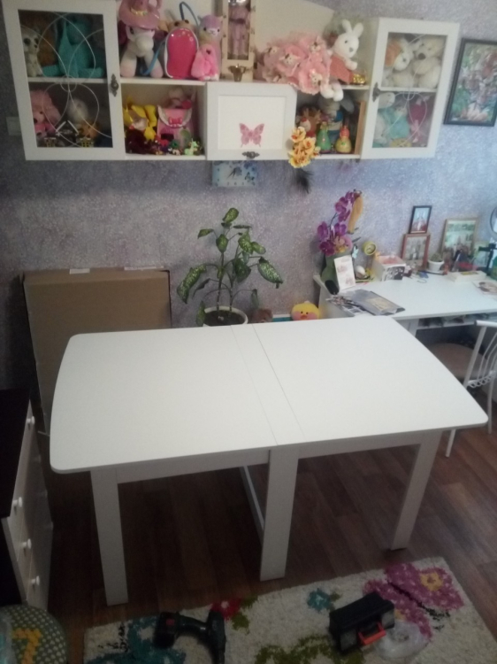 Качества стола хорошее, собирается легко и понятно (собирала сама). Стол очень компактный и, что удобно, сверху есть 9см столешницы - можно использовать в качестве полочки. В разложенном виде довольно устойчивый. Покупкой довольна.