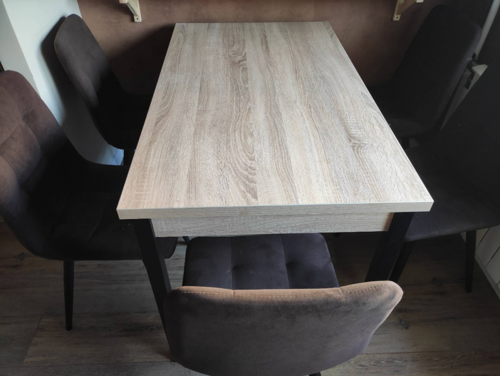 Стол привезли в целлости и сохранности. Смотрится очень хорошо, не шатается, не скрипит, все фкрнитура на месте. В разложенном виде простот огромный) Раскладывать очень легко, все продуманно. спасибо продавцу; Достоинства: Суперский стол, очень долго искала, чтобы сочетался со столешницей гарнитура. быстрая сборка, доставка.; Недостатки: нет
