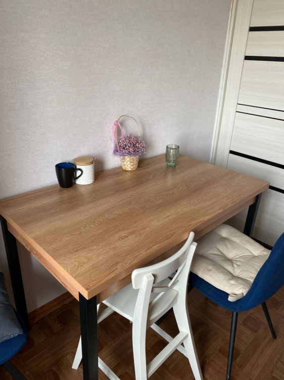 Достоинства: Хороший стол, устойчивый, железные ножки , красивый , цельная столешница, легко раскладывается , нравится что столешница толстая поэтому смотрится благородно и стильно, доставили в срок , занесли в квартиру . Собрали за 5 минут , нужно только прикрутить ножки. Надеюсь столешница влагостойкая ); Недостатки: не угодала по цвету он с рыжим отливом