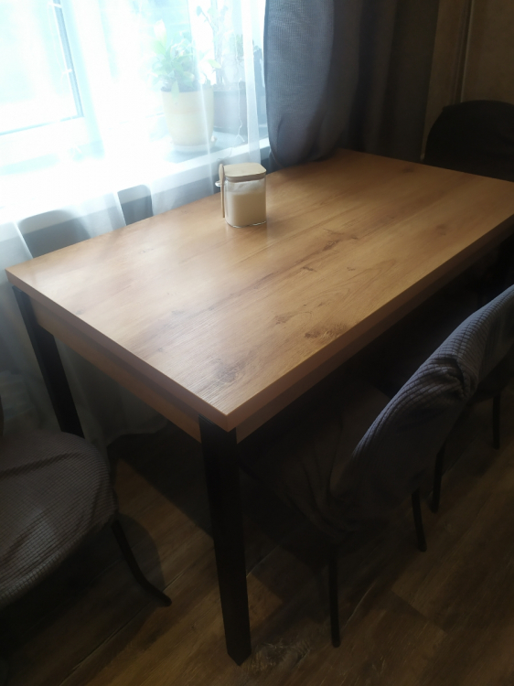 Стол привезли в целлости и сохранности. Смотрится очень хорошо, не шатается, не скрипит, все фкрнитура на месте. В разложенном виде простот огромный) Раскладывать очень легко, все продуманно. спасибо продавцу; Достоинства: Суперский стол, очень долго искала, чтобы сочетался со столешницей гарнитура. быстрая сборка, доставка.; Недостатки: нет