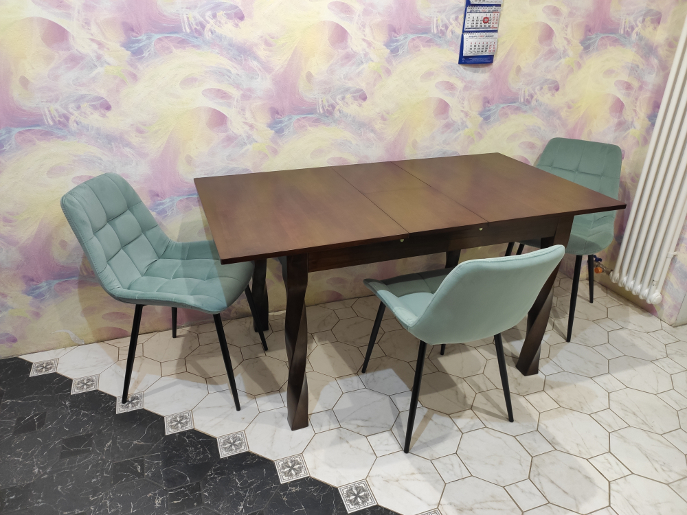 Стол добротный, красивый. Раскладывается конечно не очень легко, но подкупило то, что он из массива. Странные пара отверстий от шурупов на обратной стороне столешницы - оставляют вопросы к производителю... Но в целом стол классный, покупкой довольна. Благодарю сборщика, собрал и поставил минут за 15.