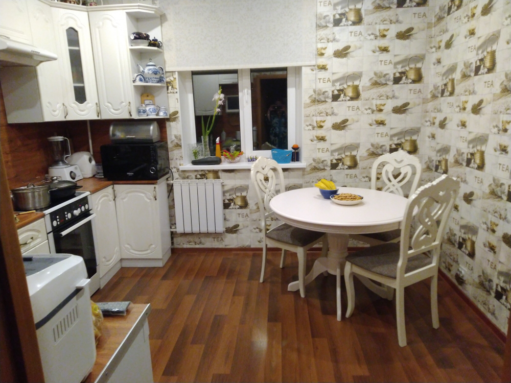 комактный, но в тоже аоемя дрсьаточнвй для ежедневного пользовпния семьей из 3-х человнк. функция раскладывания плзволяет увеличить чисдо посадрчных мест до 6-7 человек. качество исполнения и цвет соответствуют заяленным. В эксплуатации стол совсем недолго, поэтому пока точно могу сказать, что подходит для интерьера небольшой кухни в классическом стиле.