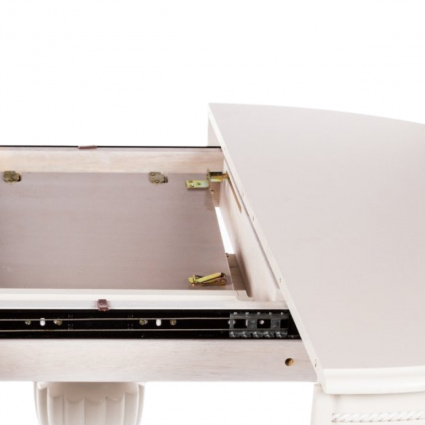 Достаточно раздвинуть края столешницы, достать центральную вставку, раскрыть ее и сдвинуть края.