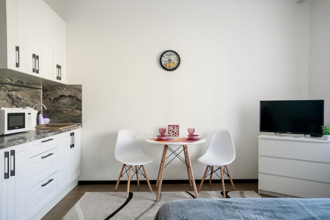 Красивый лаконичный дизайн Для маленькой кухни идеально. Красивый дизайн. По ощущениям, что столешница не из мдф, как написано в характеристиках товара. Пришёл с небольшим дефектом на задней стороне столешницы. Так же большое вопросы к самому озону, который заказ привёз позже назначенного времени и отменил стул, который был в заказе со столом….