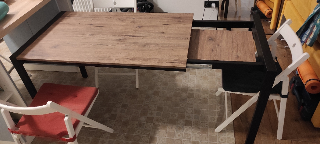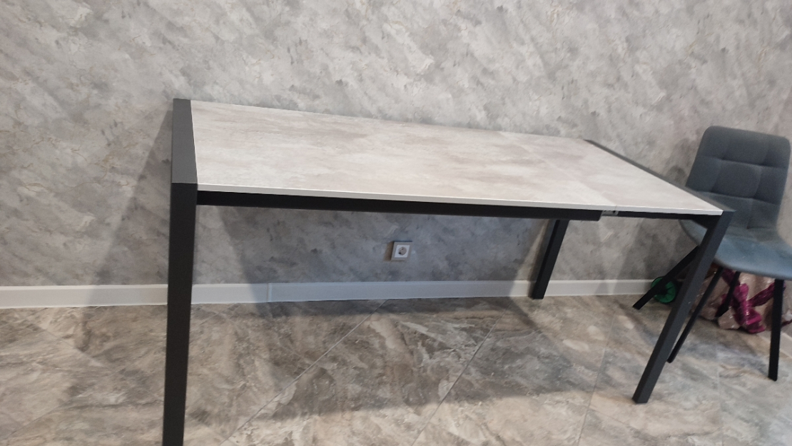 Стол то что нужно. как раз то что искал. подходит по размерам. часть стола стоит под островом. когда приходят гости выдвигаем и раздвигаем на полную длинну. Как раз то что искали. Ничего не шатается и не люфтит. собирается быстро. Сложностей не возникло. Доставка до двери.; Достоинства: Срепкий стол, размер и возможность еще увеличить. Как раз то что искал. для того чтобы уместить всех гостей. Стильный и надежный.; Недостатки: не обнаружено