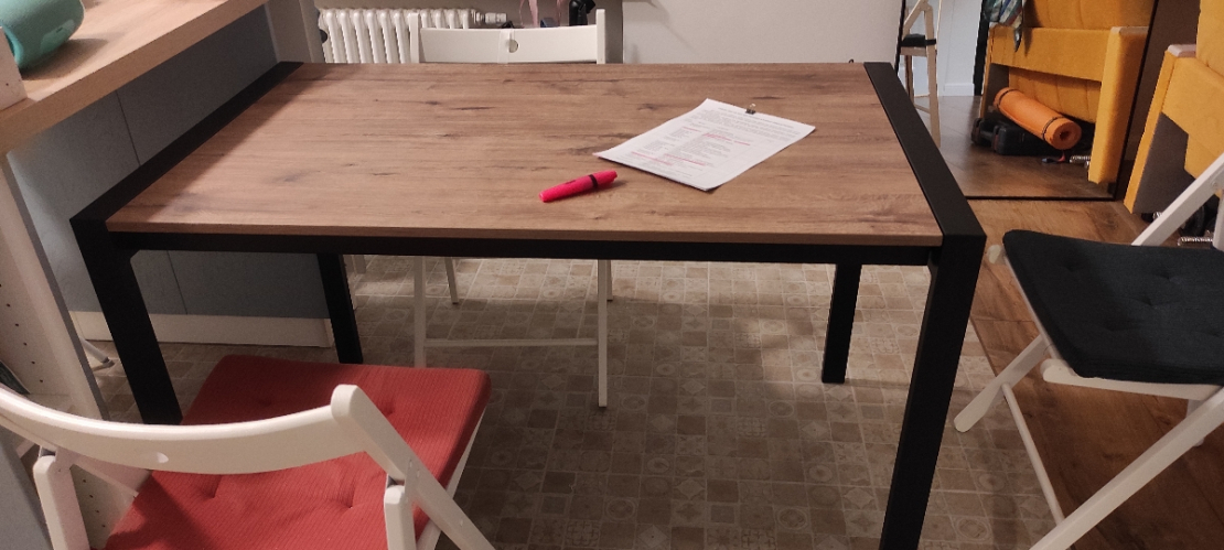 Стоит своих денег. Собирается достаточно просто. Обращаю внимание - столешница имеет фактуру, т.е не гладкая, если кому важно; Достоинства: На удивление, очень аккуратные сварные швы. Покраска порошковая, без дефектов. Толстенный профиль, т.е стол вполне такой монолитный. Столешница достаточно качественная.; Недостатки: Сложно назвать недостатком, но я бы сделал столешку сантиметра 4 толщиной и цены бы ему не было.