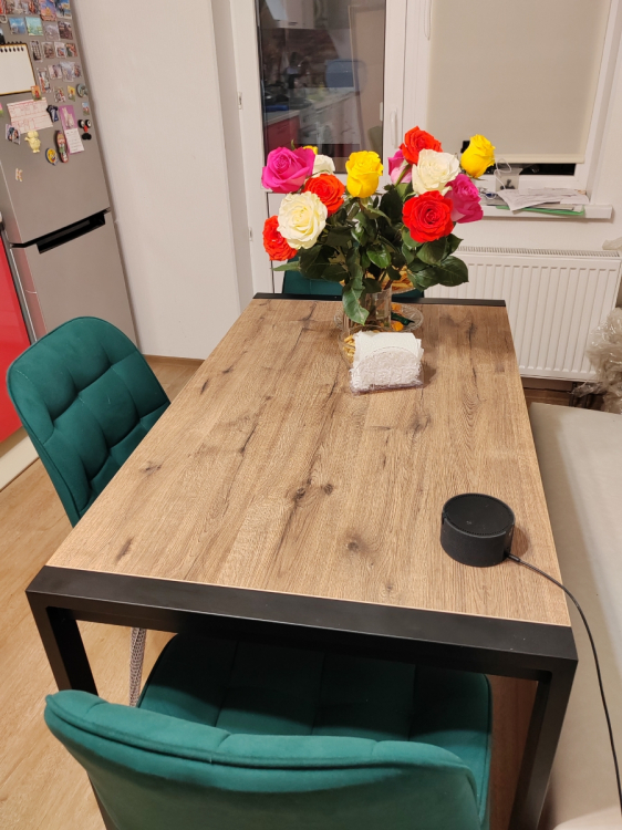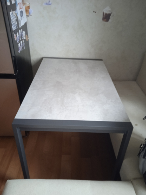 Стол то что нужно. как раз то что искал. подходит по размерам. часть стола стоит под островом. когда приходят гости выдвигаем и раздвигаем на полную длинну. Как раз то что искали. Ничего не шатается и не люфтит. собирается быстро. Сложностей не возникло. Доставка до двери.; Достоинства: Срепкий стол, размер и возможность еще увеличить. Как раз то что искал. для того чтобы уместить всех гостей. Стильный и надежный.; Недостатки: не обнаружено
