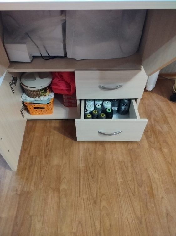 Хороший стол. Очень вместительный, занимает мало места. Брала для шитья и рукоделия. Уместилась в него швейная машинка, оверлок, нитки, и всё для шитья. Для раскроя можно раскладывать полностью. Я довольна. Доставка быстрая от производителя. Упаковано всё очень аккуратно. Не было никаких сколов и царапин. Собрали с дочерью (2 женщины) с шуруповёртом за 3,5 часа. Собирали по инструкции, не торопясь, по разметке. Спасибо большое продавцу. Рекомендую товар и продавца.; Достоинства: Красивый цвет, точная разметка для сборки.; Недостатки: Нет