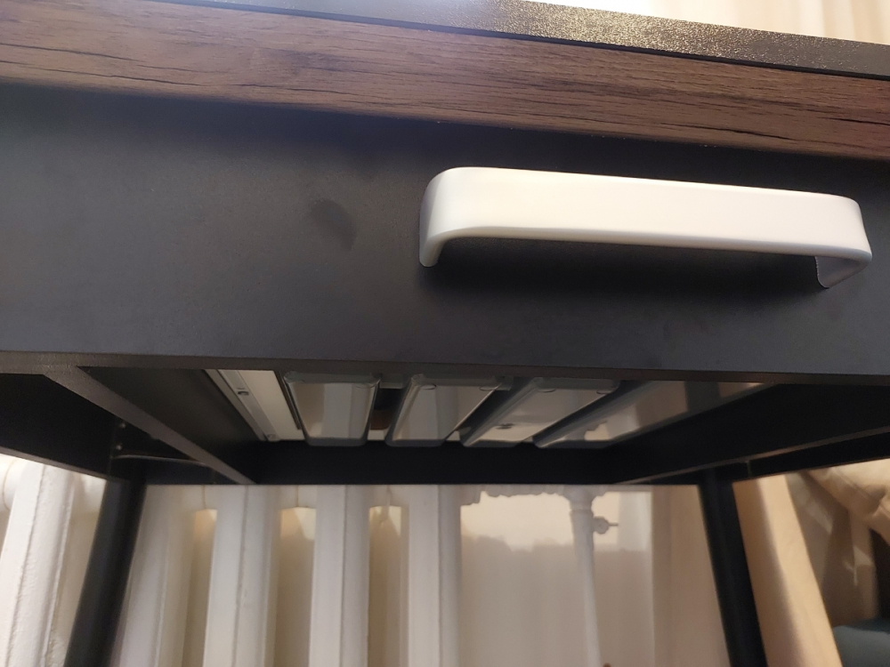 Качество стола хорошее: ножки из металла, ящик метабокс (без доводчика) имеет пластиковый лоток, столешница имеет фактуру дерева, размеры изделия идеальные для маленьких помещений. В использовании обнаружили, что на ящике и на самой столешнице сильно заметны жирные пятна - просто нужно учесть, что этот стол требует идеального протирания. На первый взгляд стол прочный, надеюсь прослужит долго. Сняла одну звезду за работу с клиентами: чат поддержки не помогает от слова совсем и не решает создавшиеся проблемы, всегда будет на стороне своего сотрудника, даже если Вы заплатили за их доставку. НЕклиентоориентированность.