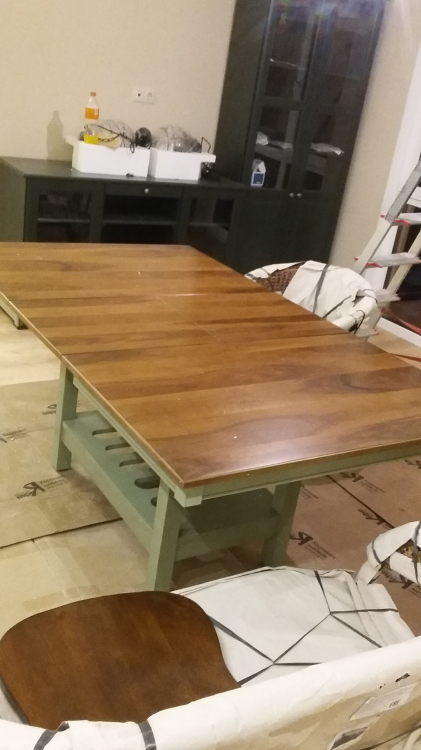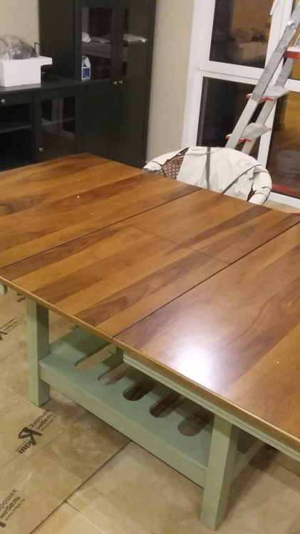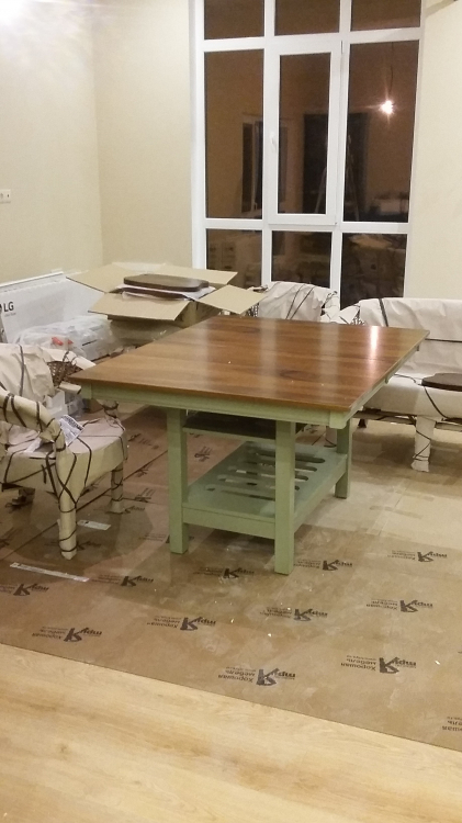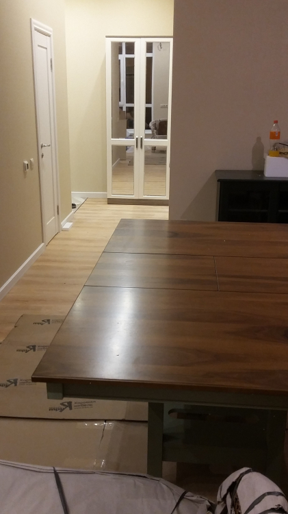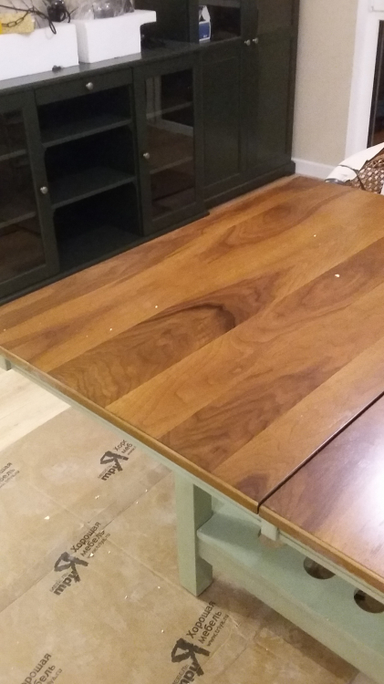 Шикарный стол !!! Тяжелый , сразу заметно, что полностью выполнен из массива. В живую его не видела до приобретения ,но после доставки была приятно удивлена , стол в тех же оттенках что и на фото сайта . Не смотря на размер столешницы , в интерьере не смотрится массивно , не перегружает комнату благодаря не большому подстолью . Очень легко раскладывается . На полку под столешницей можно подвешивать бокалы . Довольна приобретением . Спасибо менеджеру Александру за слаженную работу и оперативность в оформлении заказа .
