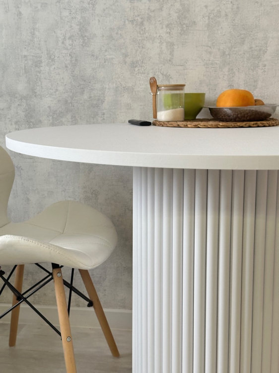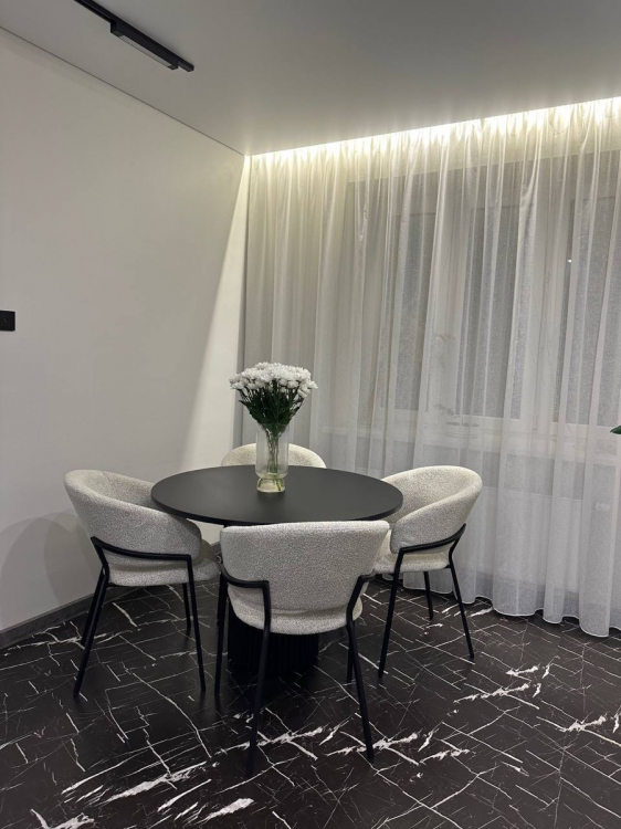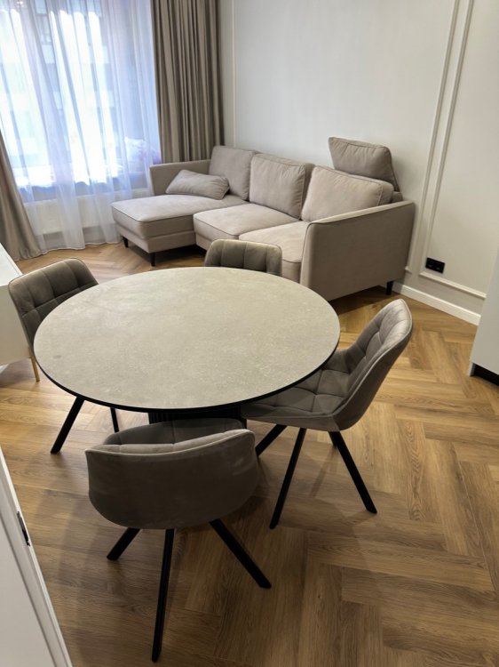 Стол - просто космос! Другие комментарии излишние. Основание из металла, покрытое порошковой матовой краской. Столешница мощная, очень тяжелая и толстая. Сверху керамика. Расцветка офигенная. Боялась сперва его увидеть, так как заказывала «вслепую», без понимания, как будет выглядеть вживую, но сейчас я просто влюбилась в этот стол! Очень красивый, выглядит роскошно, а самое главное - качество на высоте. За ним усядутся 6 человек спокойно. Но для меня не вместимость была важна, а красота. И он просто идеальный по всем критериям.