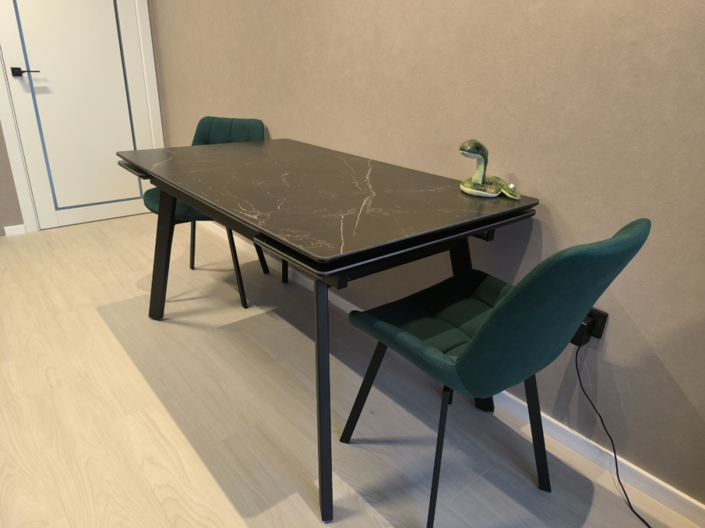 Тяжёлый (в нашем случае это плюс), красивый стол! Сборка заняла всего пару минут - прикрутить ножки Из поправимых мелочей надо только отрегулировать высоту выдвижных секций в разложенном виде, продавец по запросу прислал инструкцию, как это сделать, за что огромное спасибо!