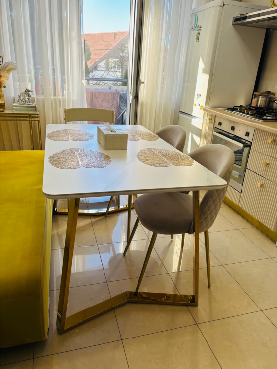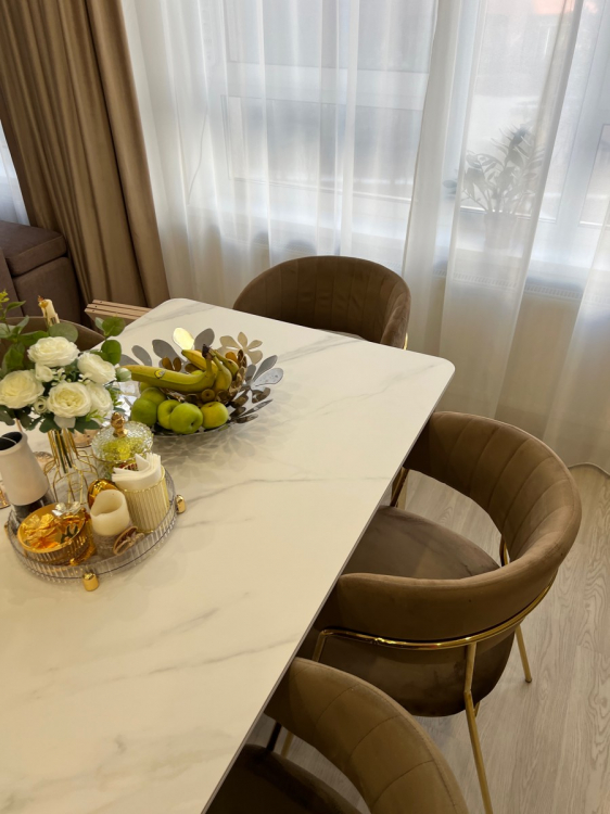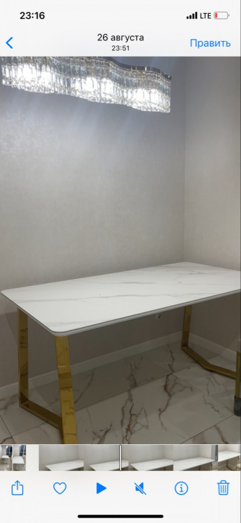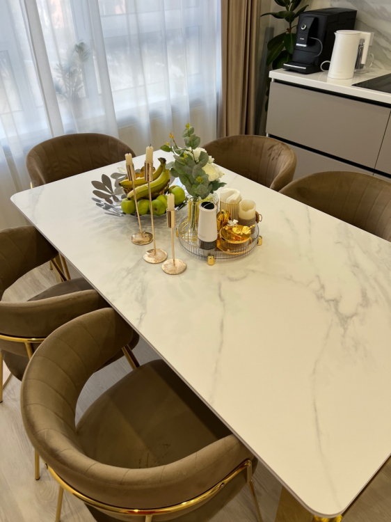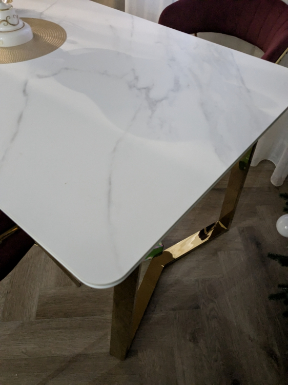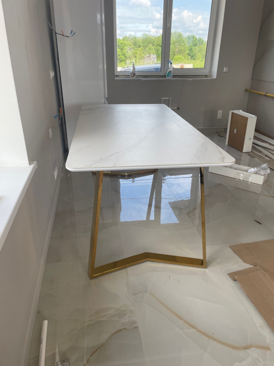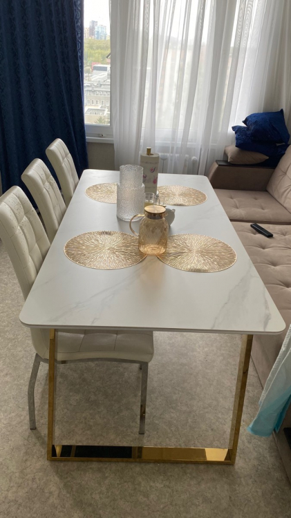Долго искала подходящий стол. И это любовь с перого взгляда. Столешница супер красивая , не царапается и можно ставить горячую посуду, тактильно приятная…Ножки это вообще шедевр, зеркальные. Теперь наконец-то встречу Новый год за большим красивым столом как и мечтала. Доставка быстрая. С менеджером изменили адрес доставки без проблем. Единственный минус, как только я его купила он подешевел(((. Спасибо вам Большое ребята за такой шедевр.