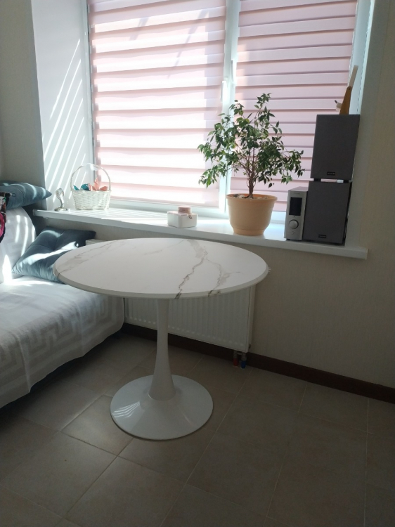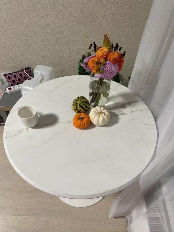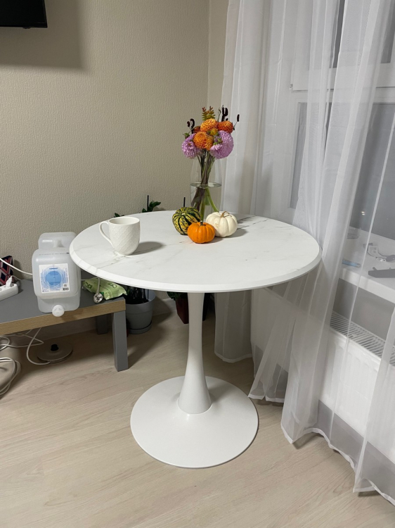 Стол понравился! Качество хорошее, крепкий, довольно тяжелый и устойчивый. Стильный, рада, что взяла именно такой, с рисунком на столешнице, потому что на нем не будет видно царапин, если вдруг появятся, (хотя на этом столе они и не остаются). По размеру для двоих человек просто отлично, да и втроем сидеть комфортно. Спасибо производителю. К покупке рекомендую!