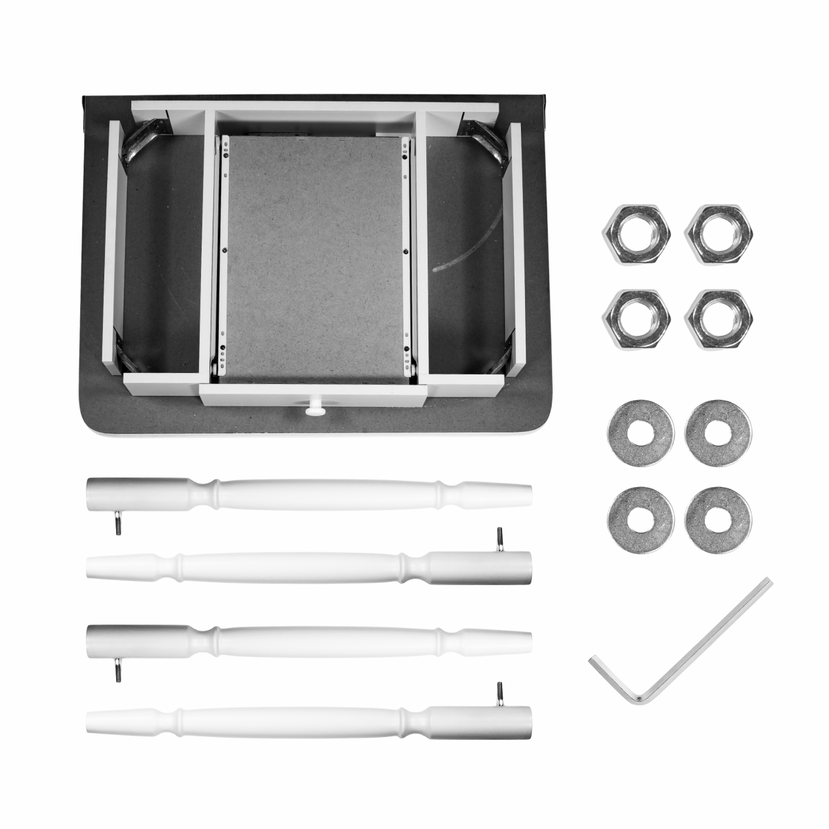 Под столешницей находится вместительный ящик полного выдвижения на роликовых направляющих.