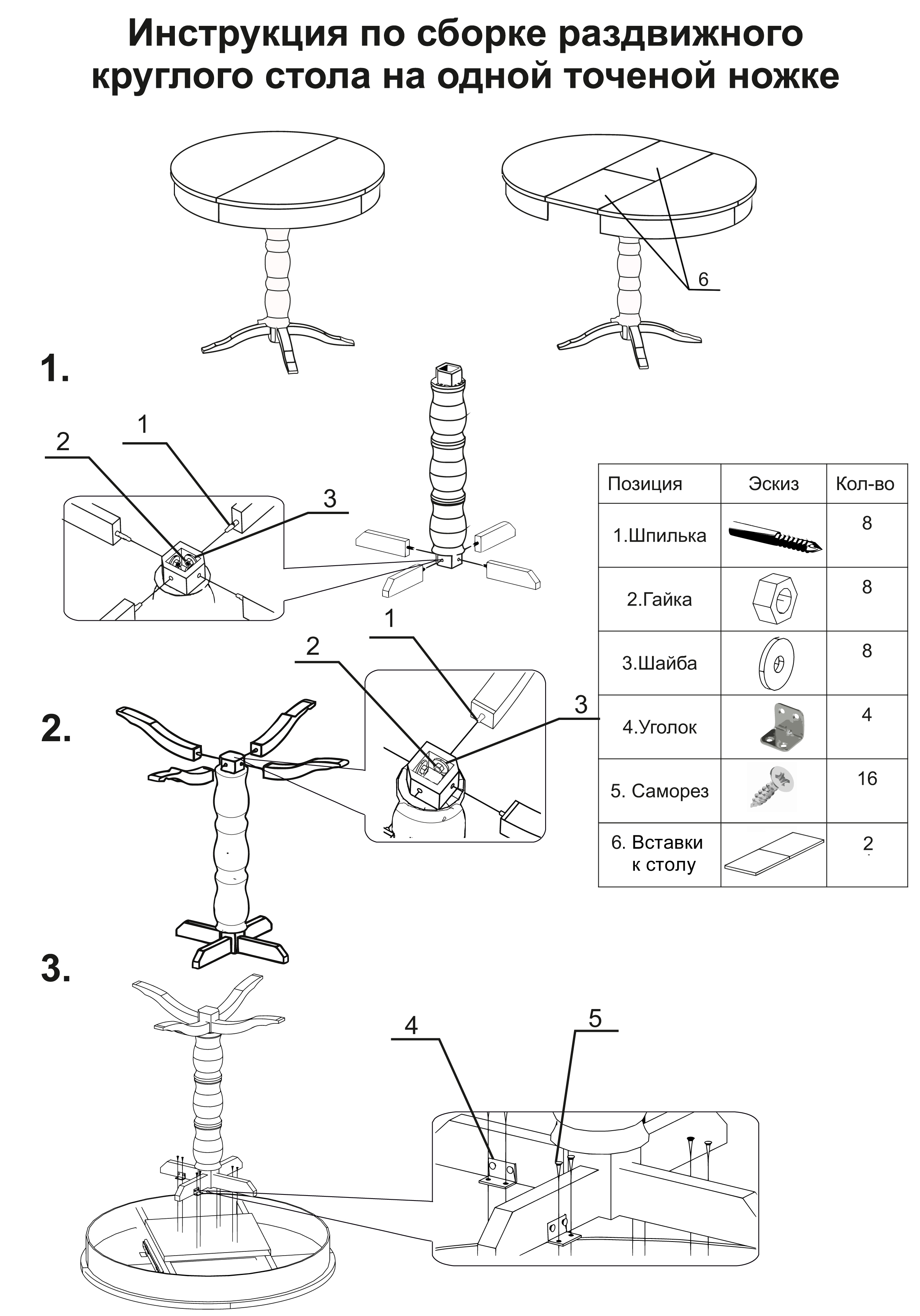 Хороший, добротный стол. Искали круглый белый раздвижной стол по адекватной цене, остановились на этом варианте. Столешница шпон с фактурой дерева. Нога массив дерева, но очень мягкого, будут оставаться следы, при неаккуратном обращении. Нам привезли в срок, однако не хватало фурнитуры, а коробка с ногой была вскрыта, курьер сам дополнил фурнитуру. Минус не было инструкции по сборке, в итоге пришлось запрашивать у продавца, пока ждали, начали сборку, в итоге собрали неверно, придётся переделывать. В целом - стол хороший.