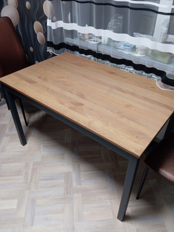 Понравилось, что товар качественно запакован был, между деталями прослойка бумаги или картона и доставка в срок. Лёгкая сборка, внешний вид, необычное сочетание цветов (ножки и столешница). Давно на него смотрела, выкупила с приятной скидкой. Недостатки: Есть небольшой скол на столешнице