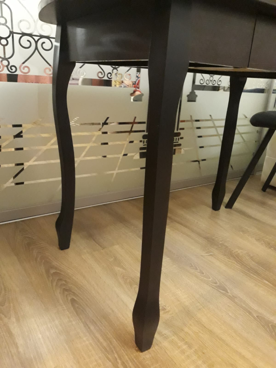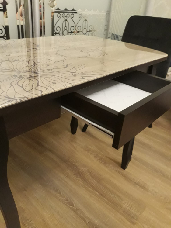 Все части стола пришли целыми, но стенки ящика пришли две левые - на фото видно. Не критично, но все таки. Одна ножка не прикручивалась из за резьбового соединения. Ящик глубоко проваливался назад, то есть не западлецо, на фото видно. Мужу пришлось дорабатывать. Он не очень доволен. Но мне понравился в целом. Я довольна, поэтому звезды не снимаю.; Достоинства: Красивый; Недостатки: Неточность сборки