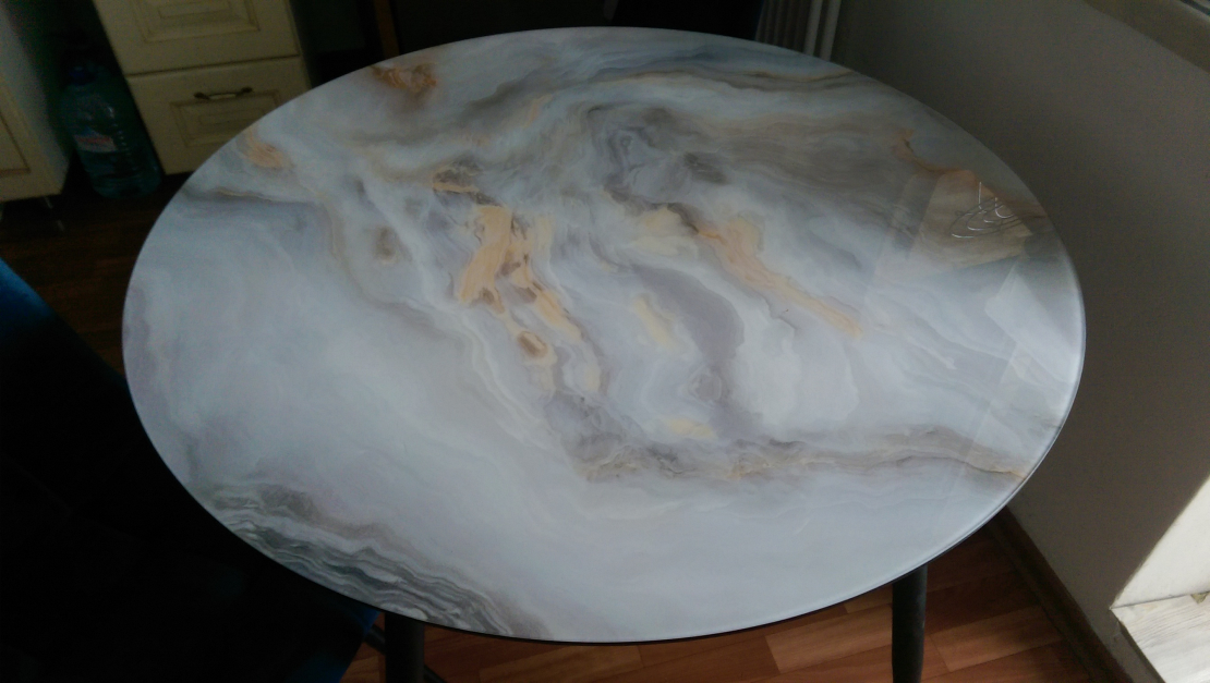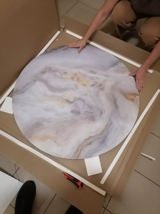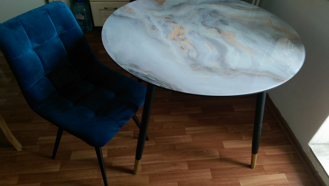 Столешница превзошла мои ожидания. Очень красивая!!! К подстольным ножкам нужно привыкнуть ,чтоб не натыкаться на них, предыдущий стол был с одним подстольем от центра столешницы ,а у этого 4 ножки выходящие в стороны и иногда натыкаешься на них подходя к столу. Думаю что это не такая уж проблема ,особенно когда сидишь за ним и любуешься столешницей,которая выглядит как каменный срез благородной породы.