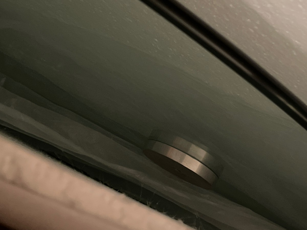 Стекло крепится к каркасу с помощью пятачков, которые приклеены к столешнице на фабрике.