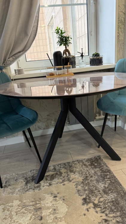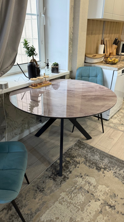 Шикарный дизайн, почти идеально вписался в интерьер гостиной, если бы выбрала ножки серые, было бы интереснее. Столешница при дневном цвете чуть имеет оттенок пыльной розы. Удобный. Не маленький не большой. Самая быстрая доставка и БЕЗ проблемная от этого магазина, большой плла можно сразу заказать сборку Ребята на доставке вежливые, аккуратные и чистые)!!!!! Спасибо!