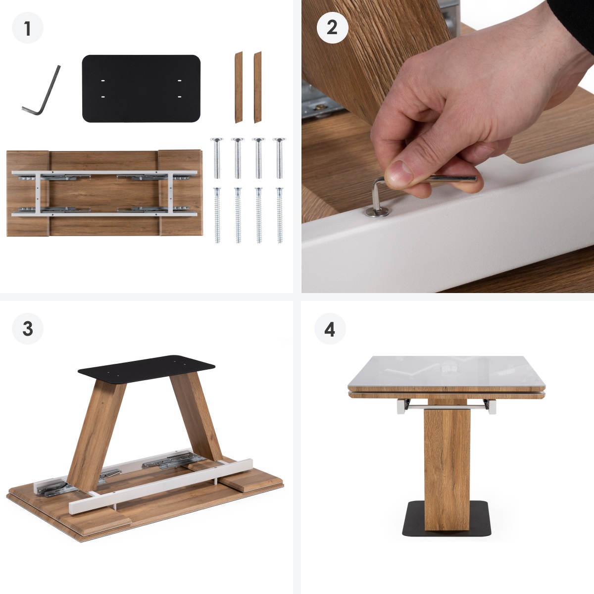 По бокам достаются дополнительные элементы и присоединяются к основной столешнице.