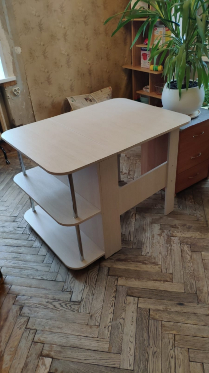 Удобный раскладной стол с полками