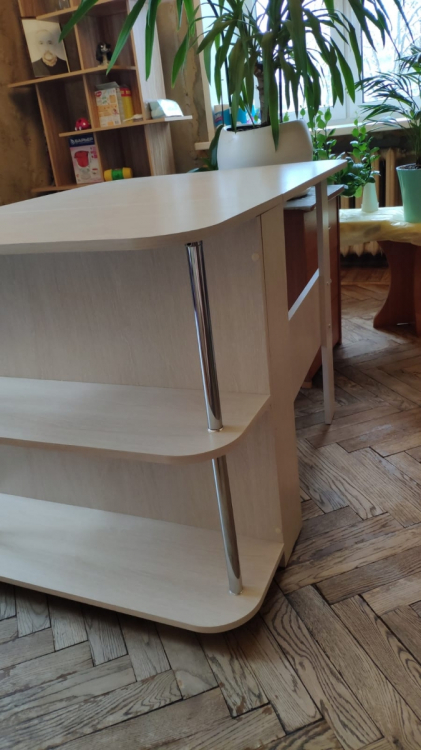 Стол очень симпатичный, цвет красивый. Хорошо вписался в интерьер. Сбоку удобные полочки. В собранном виде миниатюрный. Сборка и доставка в срок, все быстро и по делу. Менеджер вежлива и отзывчива. Купила недавно, посмотрим в дальнейшем использовании. Покупкой и услугами в целом довольна, спасибо!