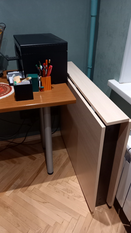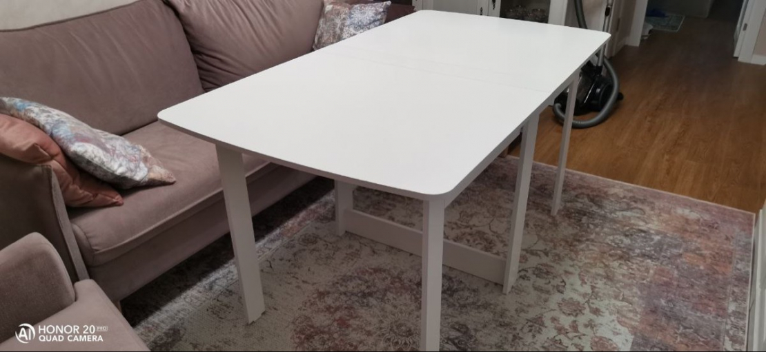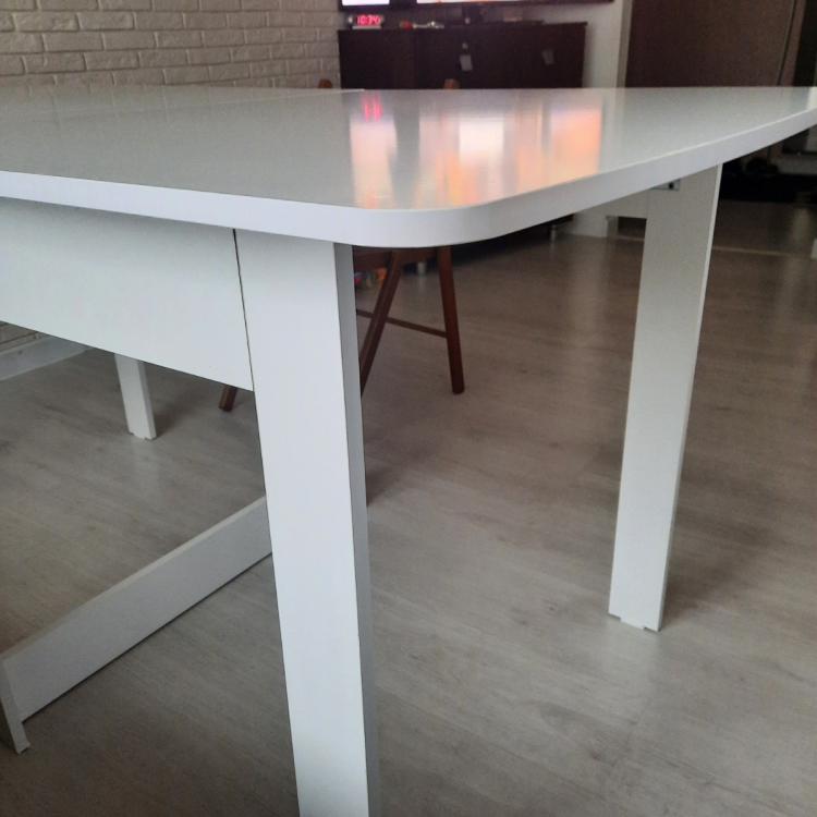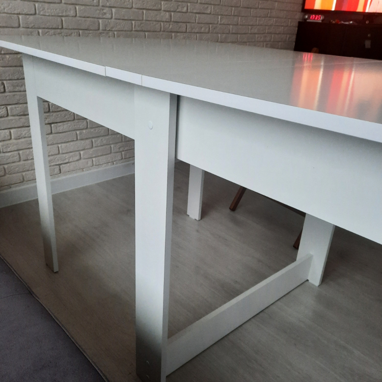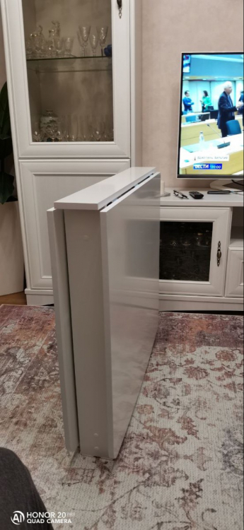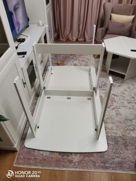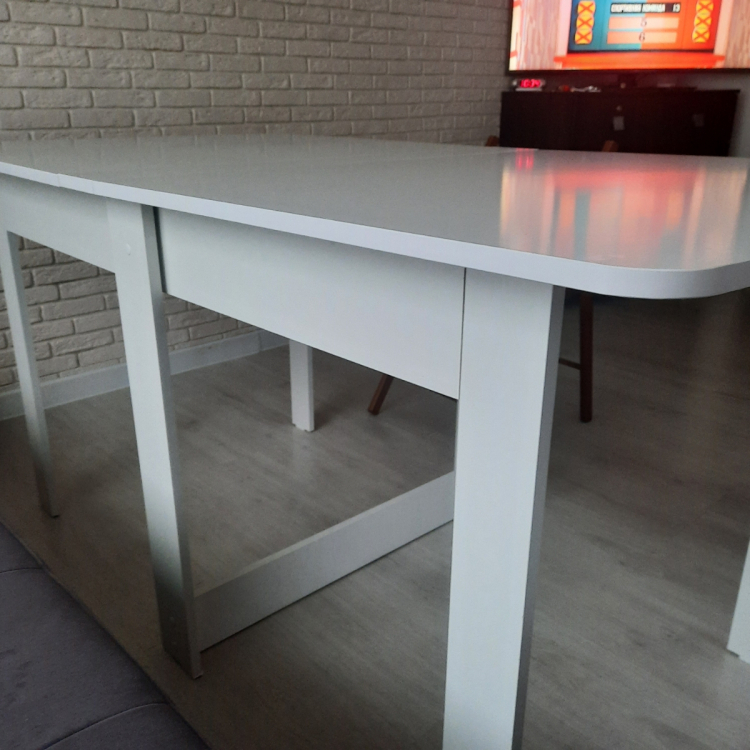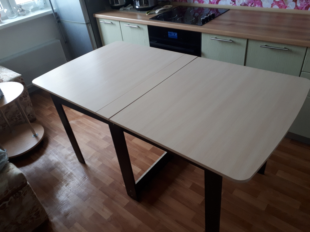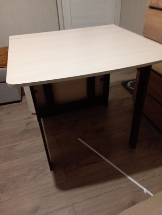 Стол рекомендую. Качественный и красивый. В собранном виде очень компактный; Достоинства: Стол красивый, очень гладкий (поверхность как глянцевая). Углы скруглены, что удобно тому, у кого есть дети). Доставка была только курьером. Заказ привезли в тот день, который и обещали.; Недостатки: В комплекте не хватило 8 саморезов для сборки
