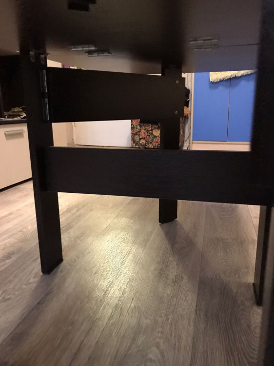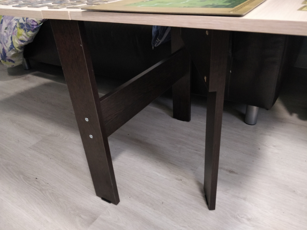 За такие деньги очень даже норм. Стол *журнальный*, обратите внимание. Довольно удобный, хоть и не самый устойчивый. Для небольшой квартиры отличное решение. Можно позвать друзей в настолки (для этого и покупали)- напитки и листы персонажей помещаются.; Достоинства: Легко собрать. Соотношение цена/качество.; Недостатки: В некоторых местах разметка хромает. Стяжка одна настолько не сошлась, что ее пришлось на саморез сажать.