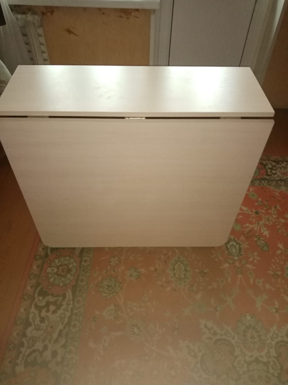 Отличный стол,соответствует фото,собрали быстро,пользуемся с удовольствием,когда не нужен стоит в сложенном виде,не занимая много места,да и в сложенном виде,на нём стоит ваза с цветами и светильник,очень удобно.Доставка была во время,занесли в квартиру,всё хорошо.