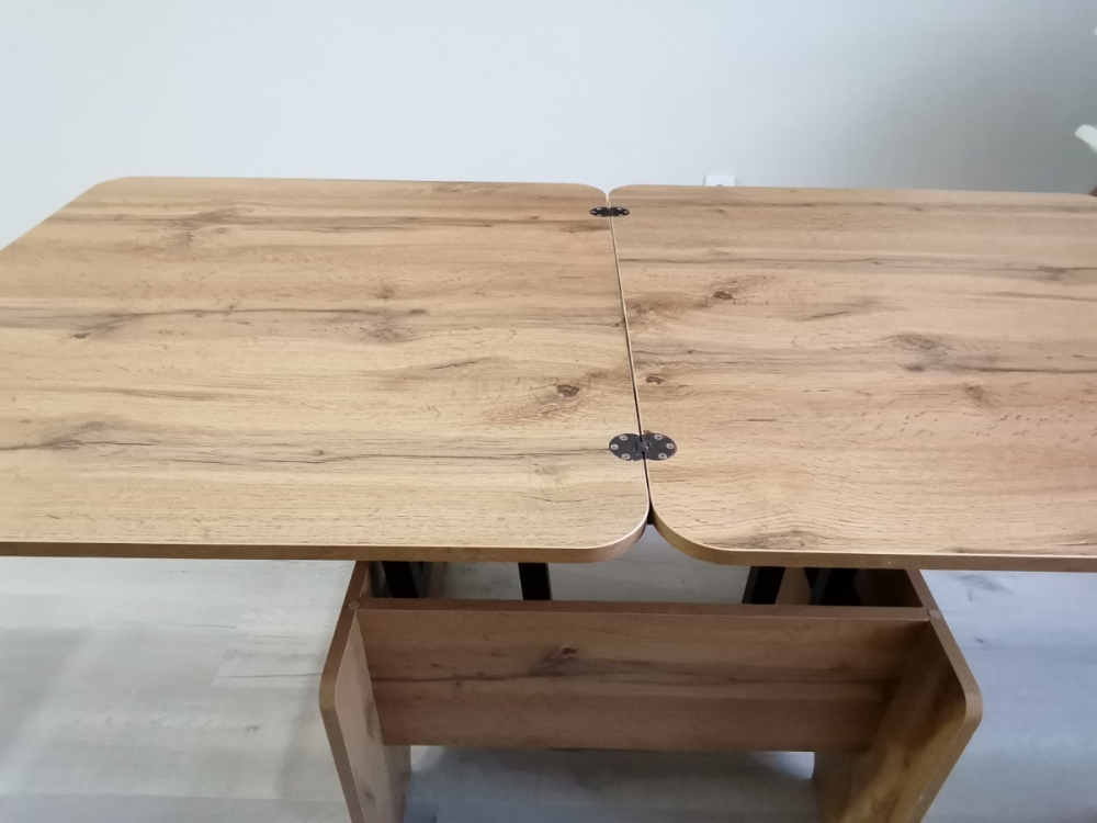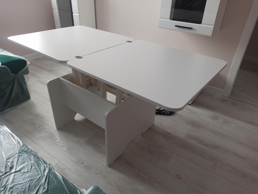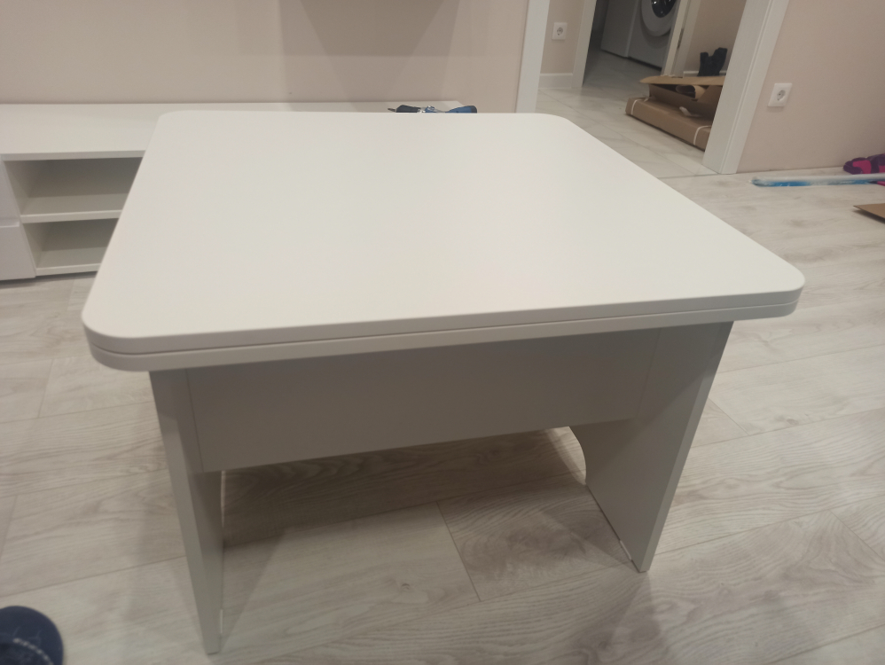 Отличный стол. Цвет приятный, добротный, очень легко открывается и превращается в полноценный обеденный стол. Покупкой довольны!