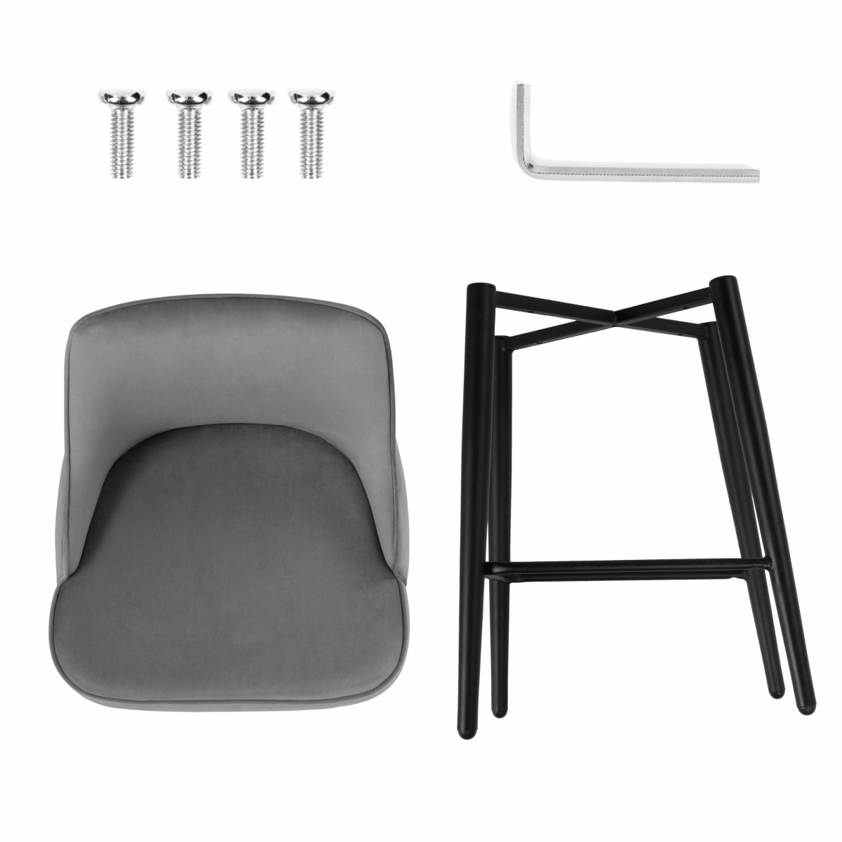 1. Выложите все содержимое коробки: 4 болта, сидушка, каркас, 1 шестигранник.