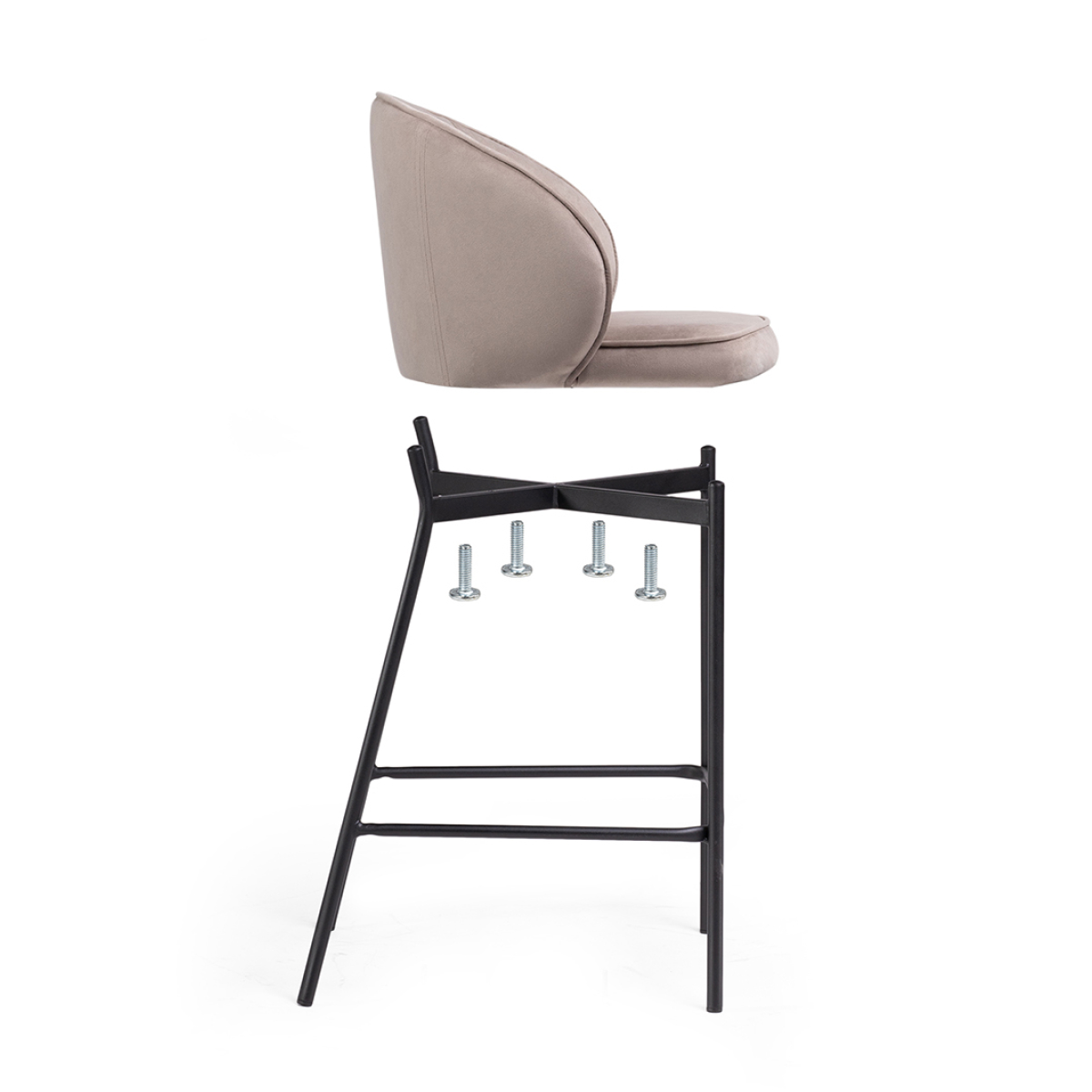 2. Переверните сидушку и присоедините каркас. Вкрутите в четыре отверстия болты с помощью шестигранника.