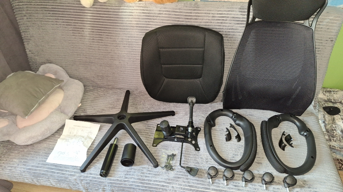 мужу понравилось кресло,все комплектующие детали на месте,стул понравился, удобный ничего не давит в спину,там подушка мягкая,из за отзывов ниже,хотели уже не покупать,но всё таки купили и не пожалели.; Достоинства: есть механизм качания, регулирует наклон спинки,дизайн не обычный; Недостатки: нет