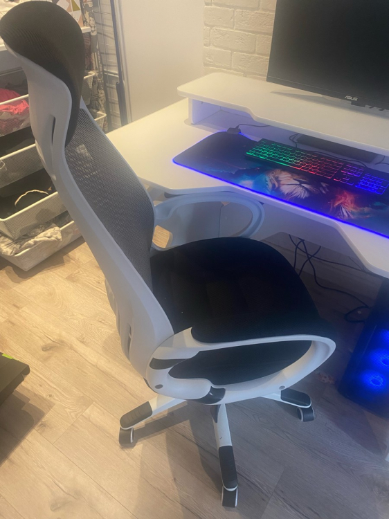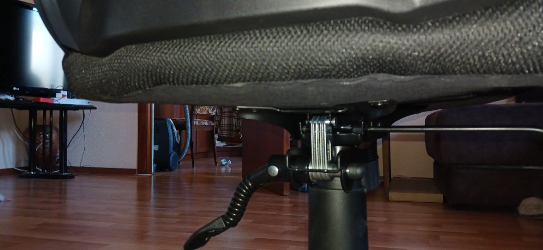 Месяц пользования. Заметил, что начали немного пошатывается подлокотники и скрипеть спинка в местах соединения с подлокотниками. Подкрутил винты, все ок. При сборке сначала лучше соединить подлокотники со спинкой а после закручивать на сиденье. Спинка достаточно плотно прилегает к сиденью из-за чего может показаться, что передние отверстия для винтов на сиденье смещены на несколько сантиметров, потому лучше закрутить задние а потом с небольшим усилием довести до нужного положения передние. Сидеть очень удобно, за целый рабочий день спина не устаёт. Мой рост 182, подушка под голову у меня на уровне шеи, но как будто так и надо, тоже удобно. Топ-ган механизм для поиграться. Под сиденьем может быть хруст, он от горизонтального товарища на 4 фото; от хруста удалось избавиться: облокотился на спинку, нащупал его и двинул слегка на лево, больше шумов не было. Сиденье за счёт толщины заметно выше популярного бюрократа. На фото сравнение при максимальном подъёме лифта. Даже ноги пола не касаются при таком положении. Креслом доволен.