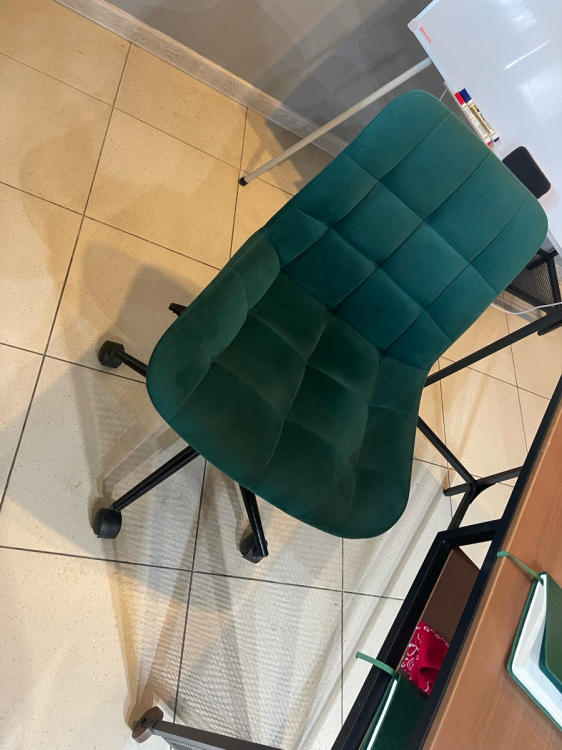 В точности как на фото.; Достоинства: В принципе отличный стул, ткань приятная, смотрится классно, сидеть удобно, не громоздкий, легко задвигается под стол. собирается легко. Металлическое основание. Насыщенный цвет!; Недостатки: Есть не большое шатание сидушки при сидении, при облакачивании на спинку, кажется, что перевернешься назад Доставка не такая уж и быстрая + еще на 1 день доставка задержалась. шел больше недели